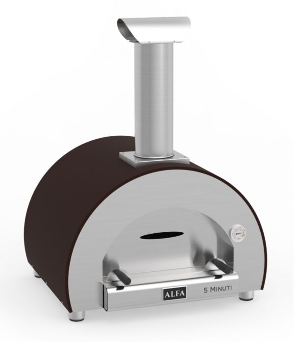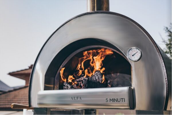 ALFA FORNI 5 MINUTI to piec do pizzy opalany drewnem, przeznaczony do użytku na zewnątrz. Znany ze swojej zdolności do osiągania wysokich temperatur (ponad 500°C) w zaledwie 5 minut, umożliwia szybkie i sprawne pieczenie pizzy.