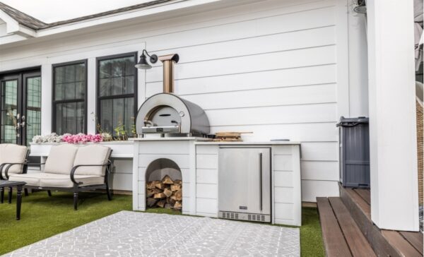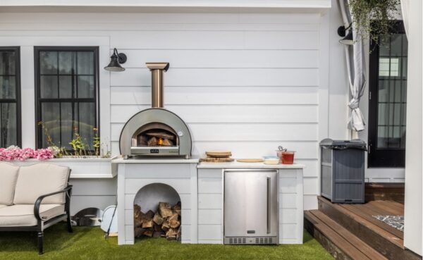 ALFA FORNI 5 MINUTI to zewnętrzny piec do pizzy na drewno, który osiąga temperaturę ponad 500°C w zaledwie 5 minut. Dzięki łatwemu montażowi i wyjątkowemu aromatowi wypieków, jest idealny dla miłośników tradycyjnej kuchni na świeżym powietrzu.