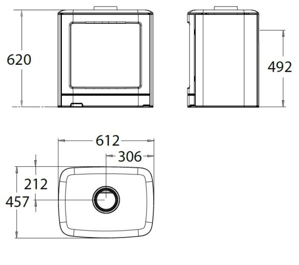 - Możliwość podłączenia górnego lub tylnego komina