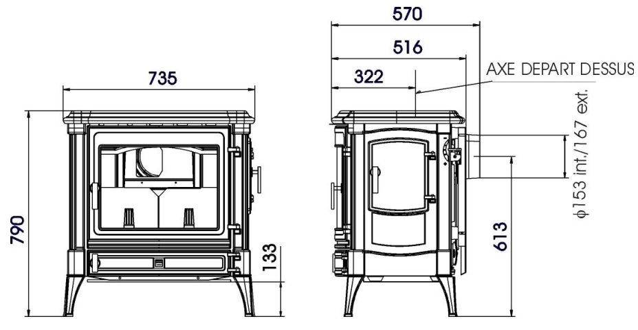- Czyste spalanie dzięki podwójnemu wlotowi powietrza: pierwotny z termostatyczną kontrolą temperatury i wtórny wlot powietrza nad drzwiami dla niskiej emisji CO2