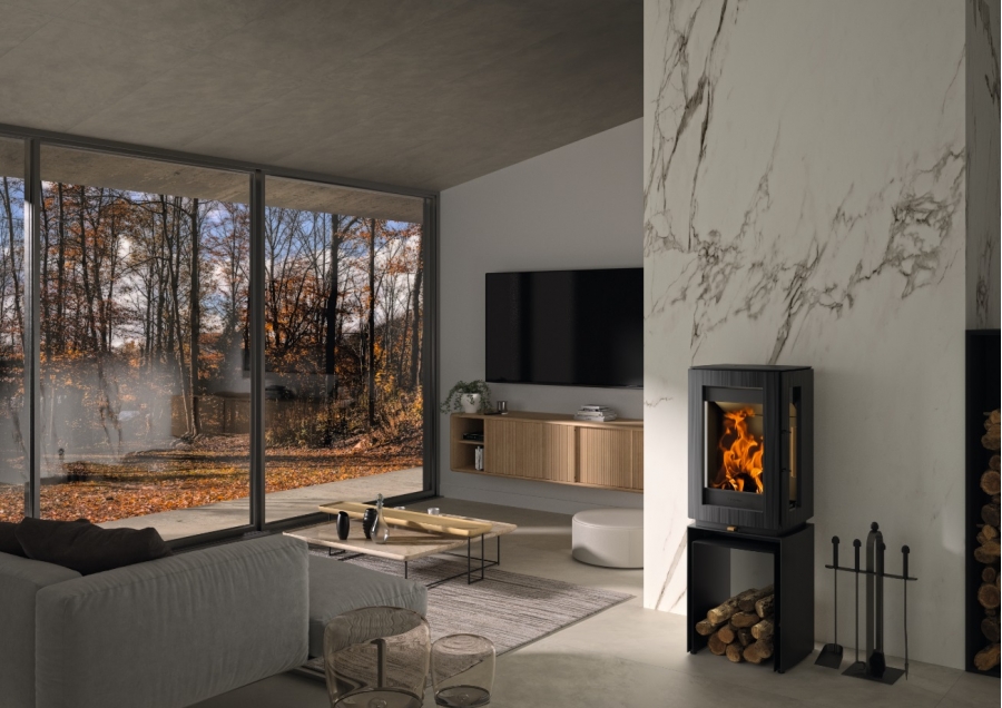 Dzięki dużym, przezroczystym panelom szklanym oraz systemowi Airwash, który zapobiega osadzaniu się sadzy, Glow zapewnia niezakłócony widok na płomienie, tworząc magiczną atmosferę. Nowoczesna estetyka pieca sprawia, że doskonale wpasowuje się w każde wnętrze, dodając mu wyrafinowanego charakteru.