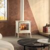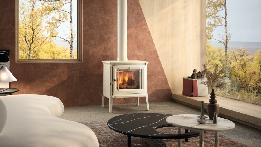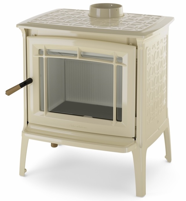 Kolekcja Hearthstone wyróżnia się eleganckimi kształtami, które doskonale pasują do nowoczesnych i tradycyjnych wnętrz. Wnętrze kominka wykonane z białego żeliwa podkreśla urok tańczących płomieni. Piece są dostępne w kolorze czarnym matowym, brązowej emalii i kremowym.