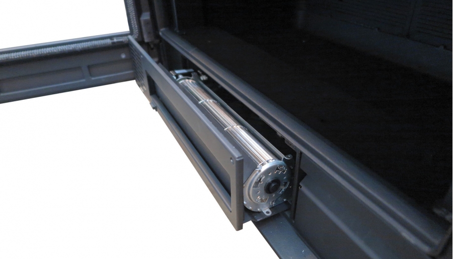 Obudowa wkładu C-16 posiada dwa wyloty do odprowadzania ciepła do sąsiednich pomieszczeń. Efektywną dystrybucję ciepła wspiera cichy wentylator z trzema poziomami mocy, który dodatkowo pełni funkcję zabezpieczenia przed przegrzaniem.