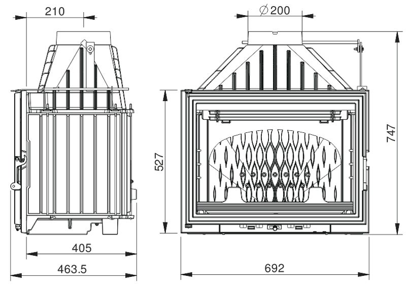 Wkład kominkowy waży 128 kg i posiada średnicę wylotu spalin 200 mm, co zapewnia stabilność i łatwość instalacji. Przeznaczony do spalania drewna o maksymalnej długości polan 50 cm, kominek ten jest objęty 5-letnią gwarancją. Jego jakość i efektywność potwierdzają certyfikaty CE i FLAMME VERTE oraz zgodność z normą EN 13229 i wymogami Ekoprojektu, co kwalifikuje go do klasy energetycznej A.